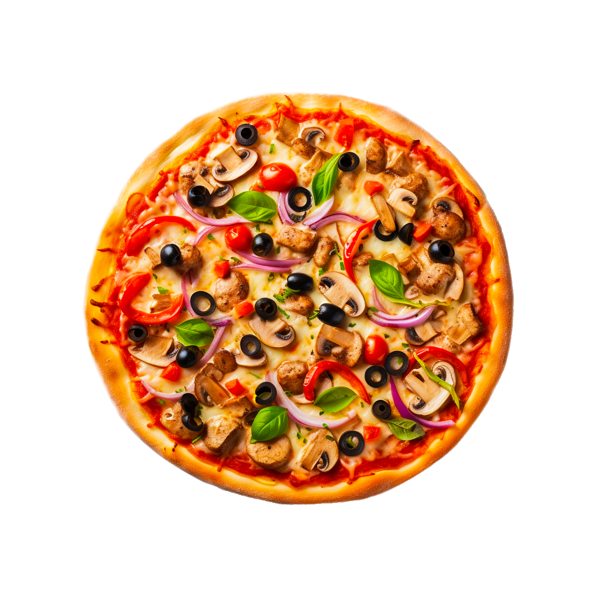 Knuspriger Teig mit frischer Tomatensauce, Champignons, Paprika und Zwiebeln und unserer speziellen Käsemischung.