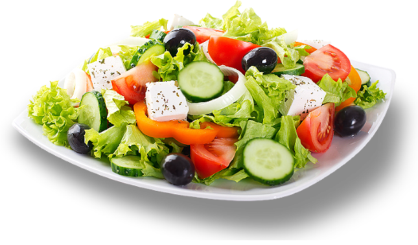 Salat, Gurken. Zwiebeln, Fetta ,Tomaten, Oliven 1x Dreßing nach Wahl